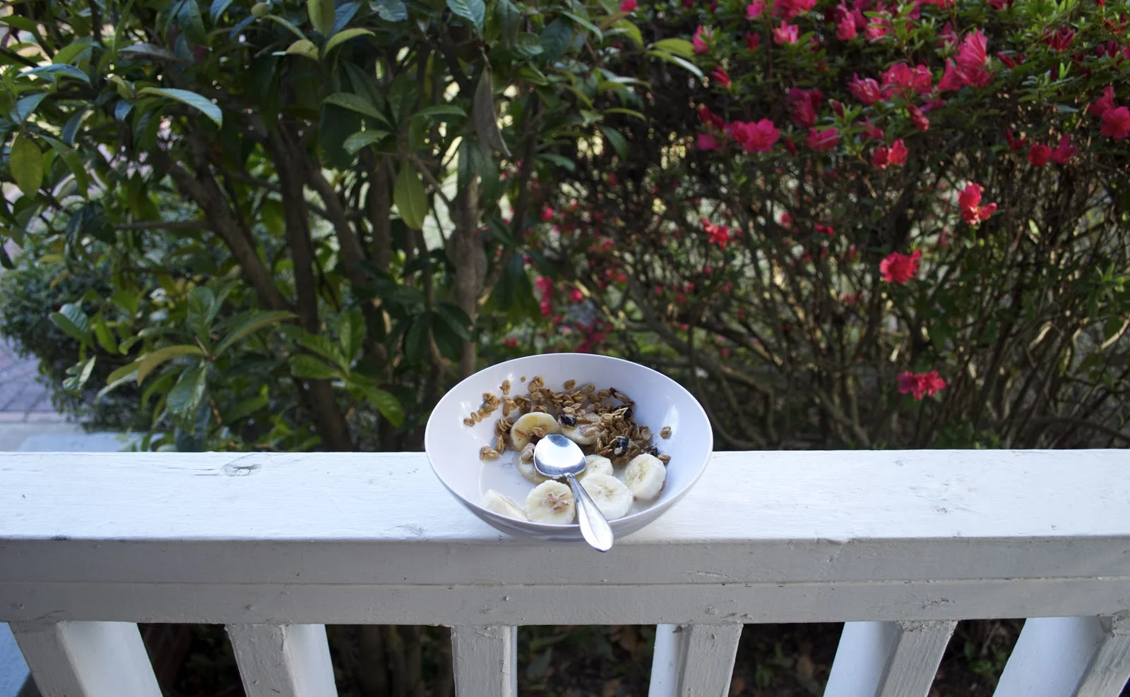 One of the things I loved about having this at the Franklin house was the ability to treasure it while on their porch... They have this beautiful front porch with a swing that becomes gradually lit up by morning rays. Combine that with the warming weather of last week and I felt like I was in heaven. Those cool, exhilarating summer mornings when you know it's going to be hot and you're going to have a full day, but nothing about that seems unpleasant because at that moment all you can dwell on is the pure gift of the waking birds and the blissful air. That. My soul delights in that. Especially with homemade granola.